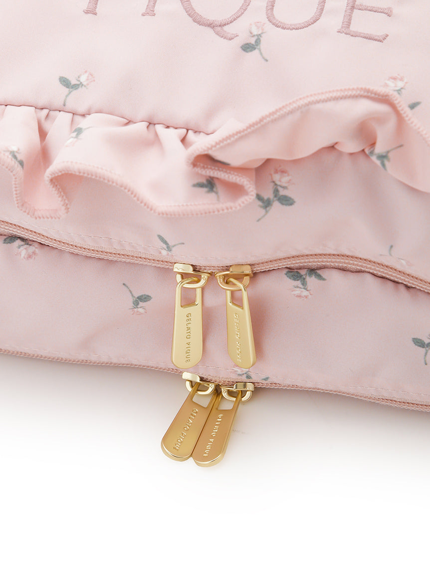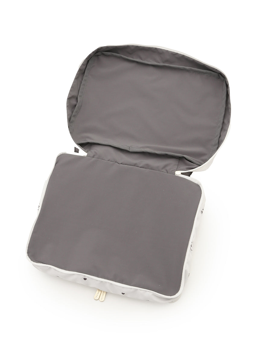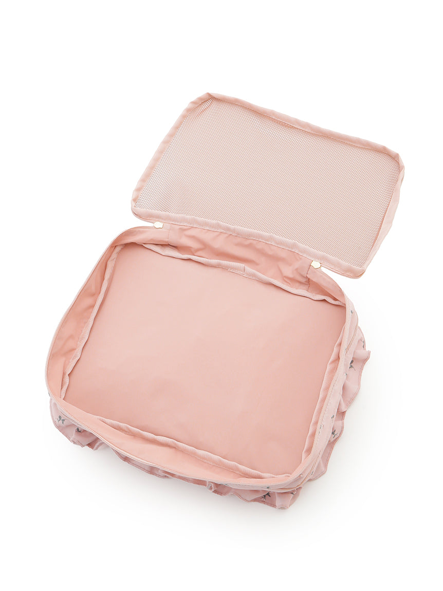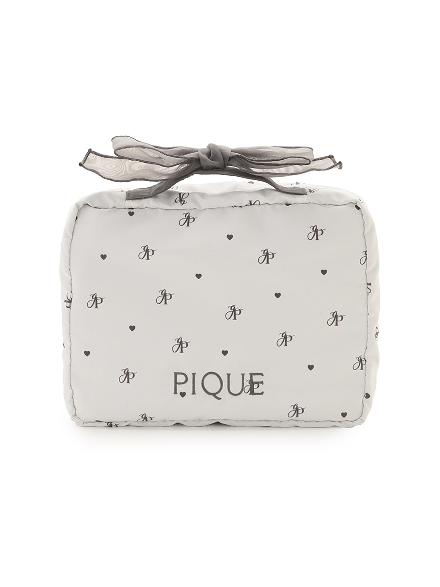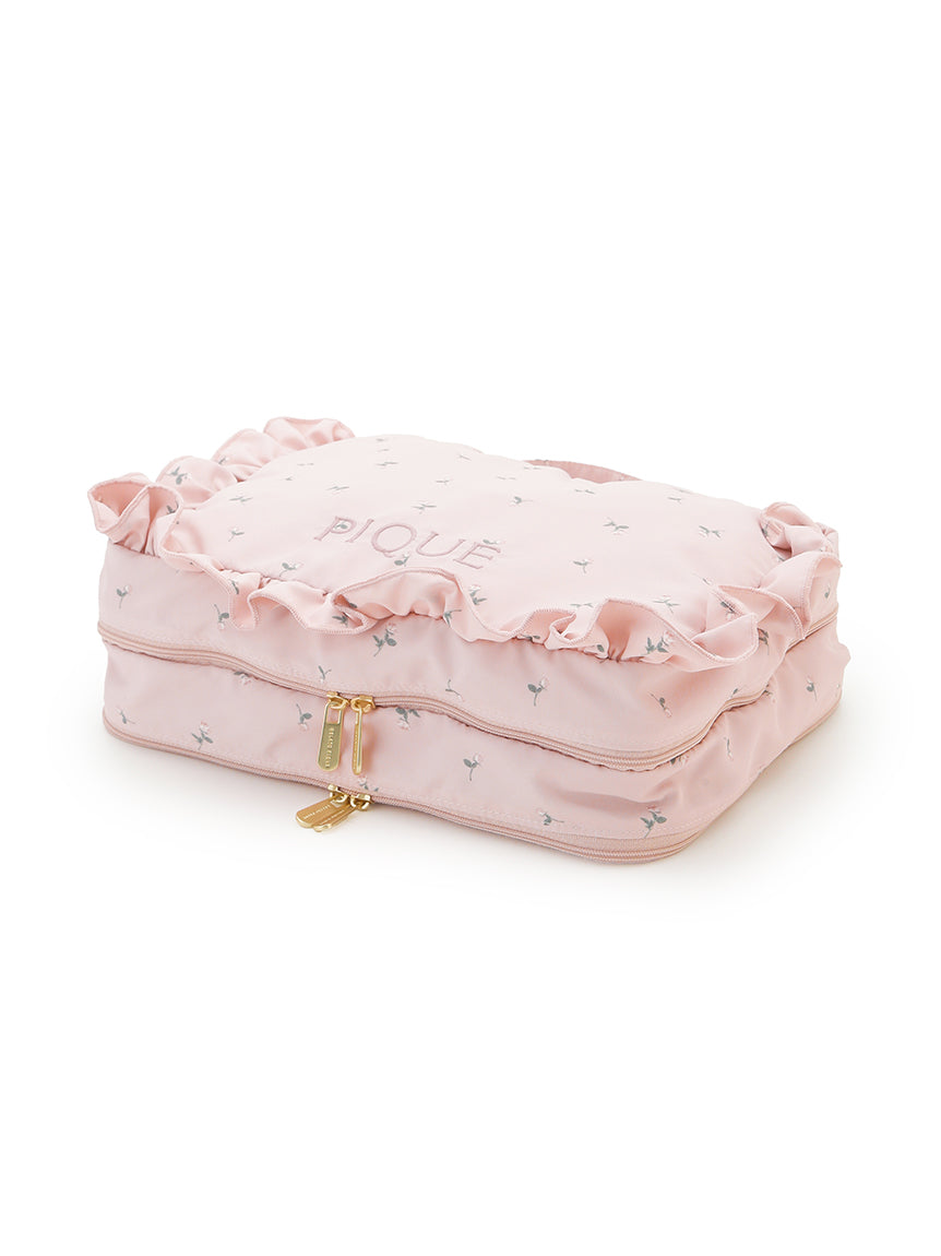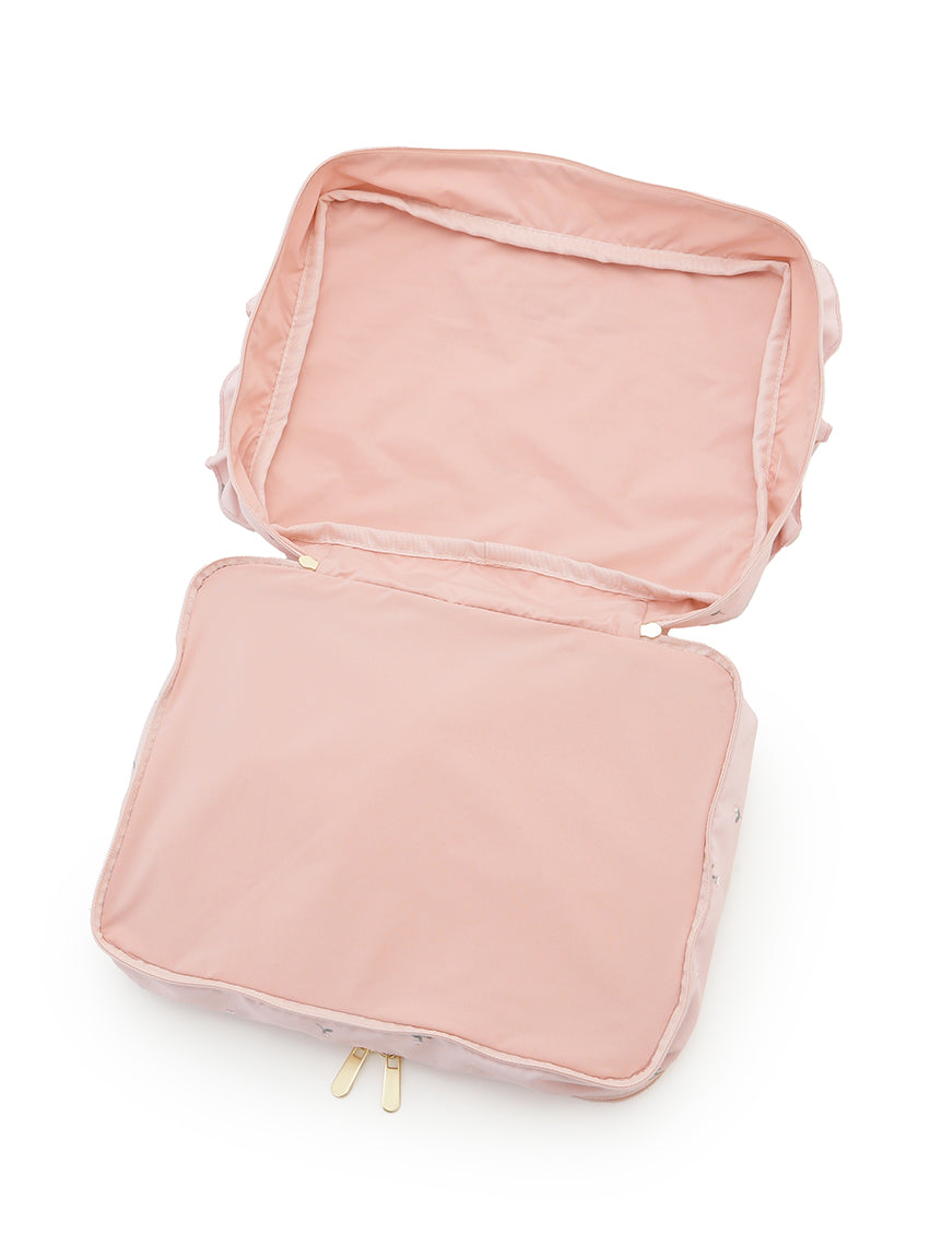 This cute travel pouch's front is decorated with cute decorations and logo embroidery. The size is perfect for storing thinner tops or underwear, while a pocket space for used ones is placed at the back. Available in monogram ivory and flowery pink, a large-size pouch with the same design is also released in the same collection.