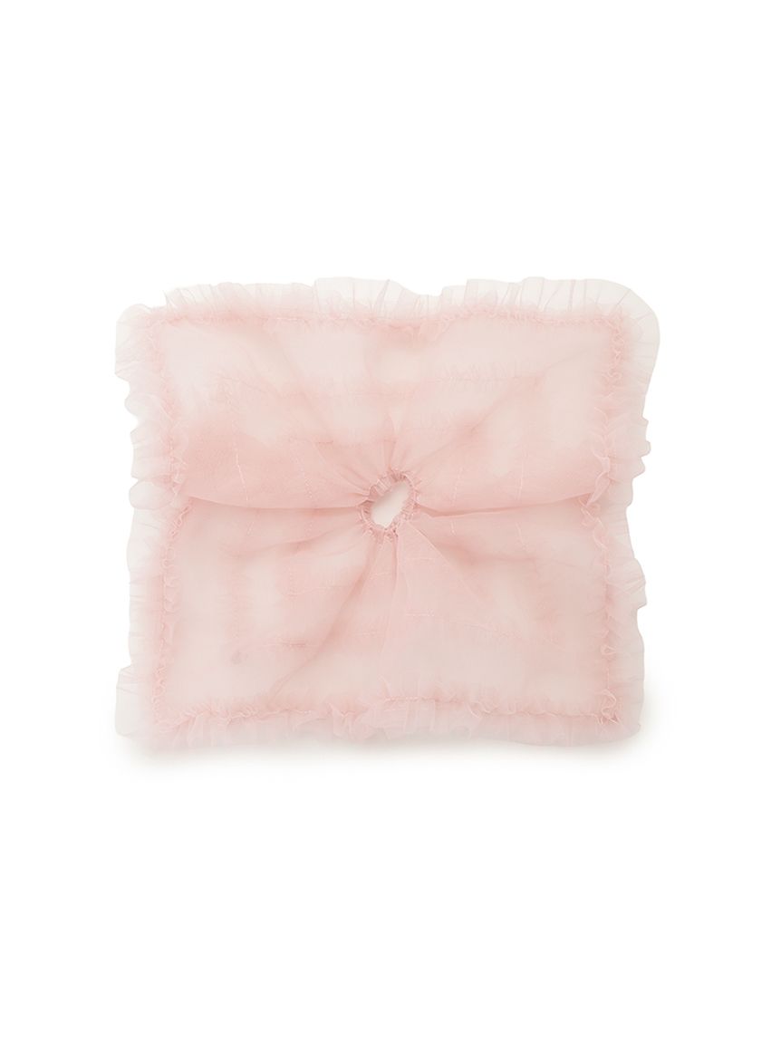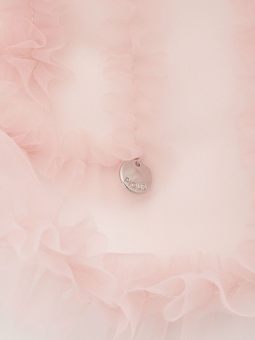 This scrunchie is made of spring-like tulle and adorned with plenty of ruffles. When worn in a ponytail, it adds soft volume for a glamorous look. Its sheer texture makes it feel light and comfortable. It features a gold logo charm as a finishing touch. Available in three colors: pink, blue, and gray. It also makes a great gift when paired with the pouch from the same series.