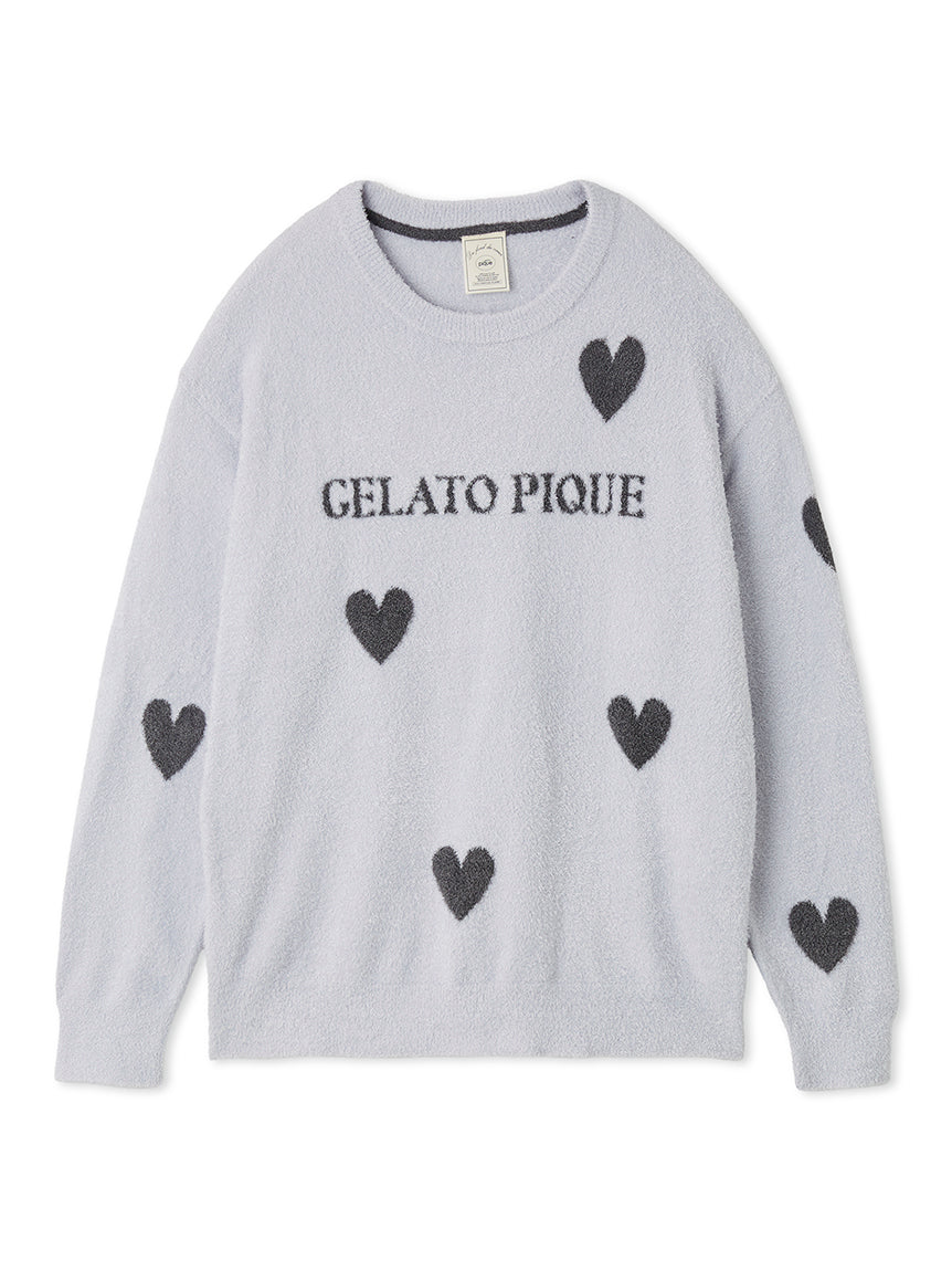 This heart-studded pullover, designed to make your time at home more enjoyable, also features the GELATO PIQUE logo. "Hot Smoothie" retains warmth despite its lightweight fabric, ensuring you'll stay cozy and comfortable indoors. Available in three colors: off-white, blue, and brown. Matching pants are also available.