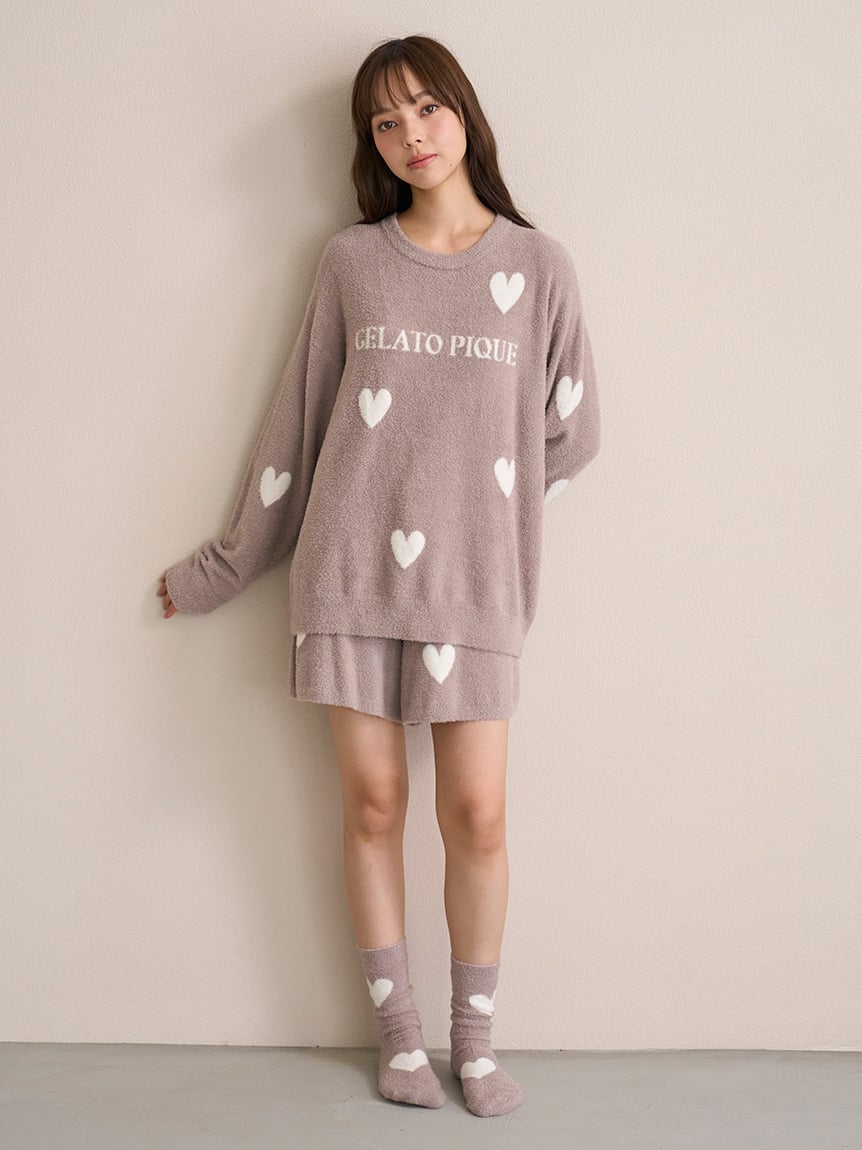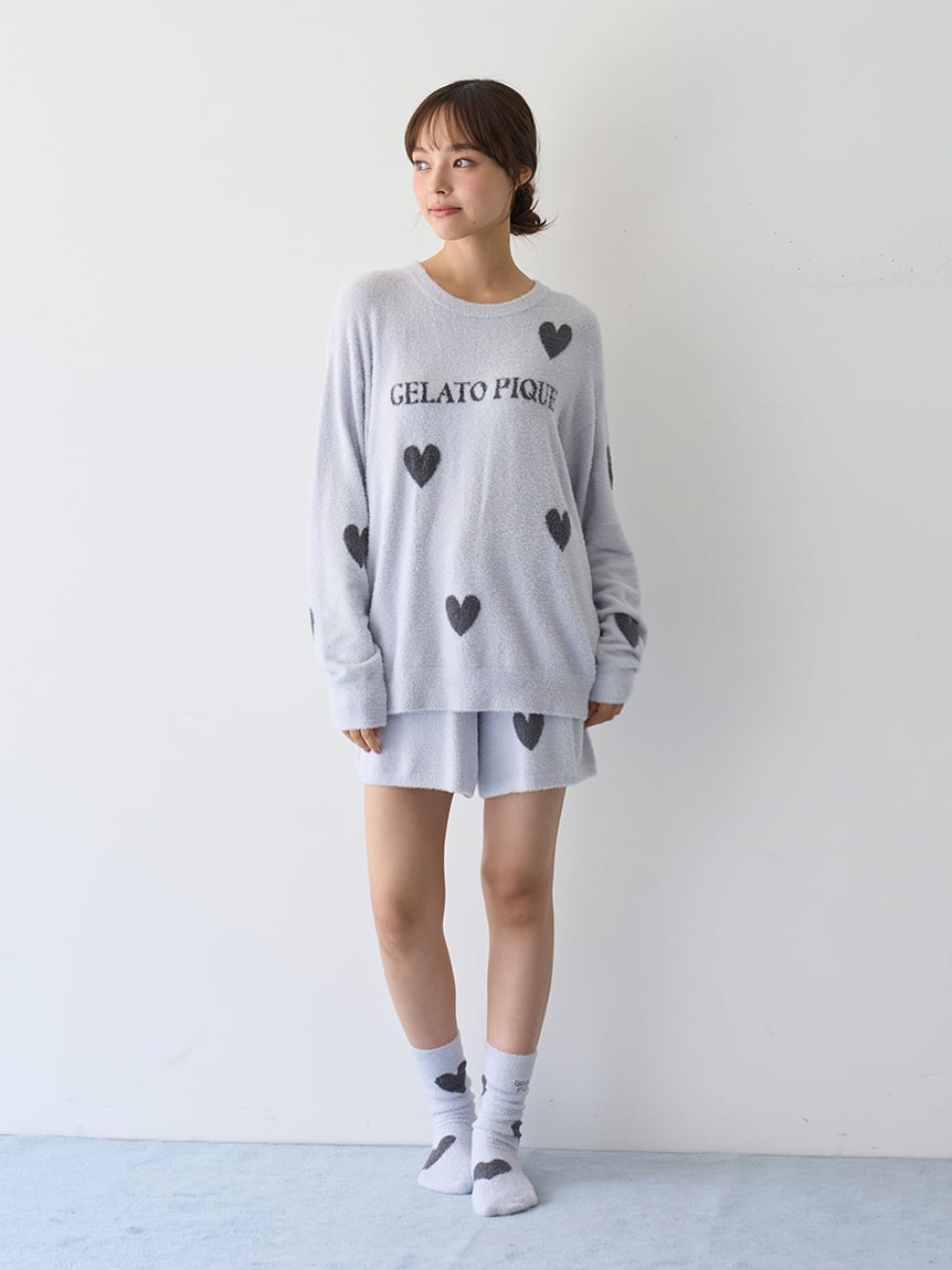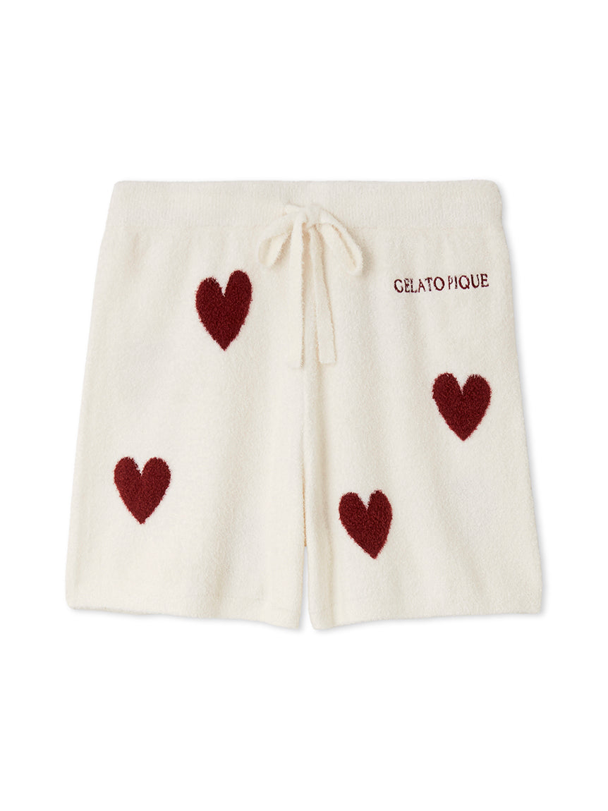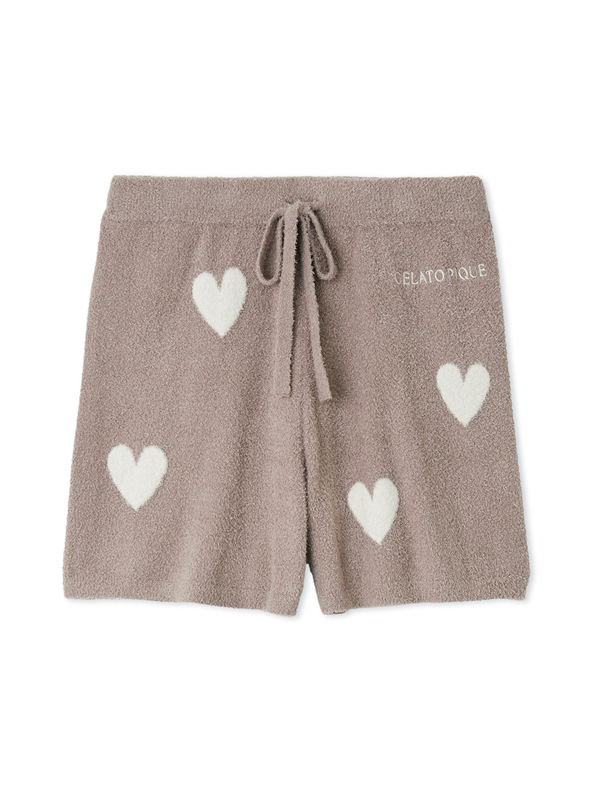 This heart motif series is made from the smooth, heat-retaining "Hot Smoothie" fabric. These heart-studded shorts, perfect for enjoying your time at home, feature the GELATO PIQUE logo at the waist. Available in off-white, blue, and brown. A matching pullover and socks are also available.